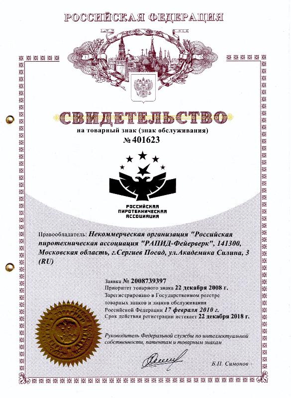 РПА стала законным правообладателем по использованию комбинированного товарного знака «Российская пиротехническая ассоциация».