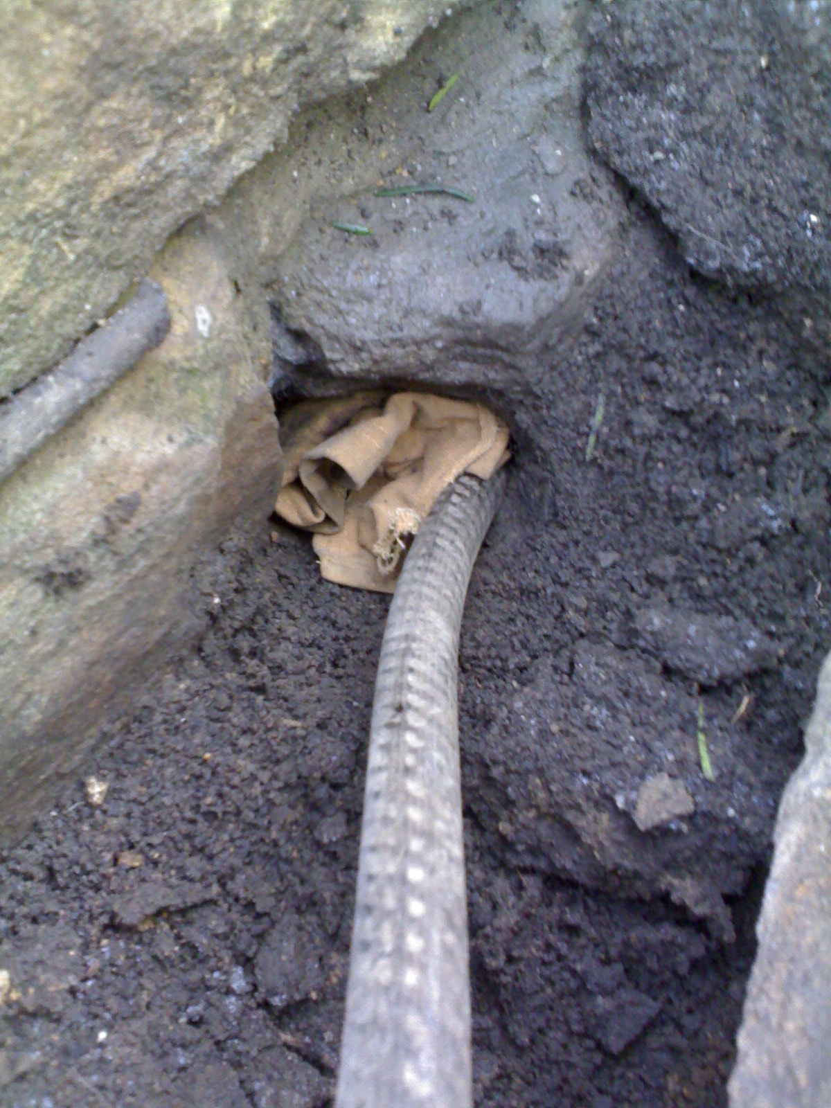 Я взял контурные свечи, поджог их, засунул их в нору, вставил шланг с воздухом (от компрессора) и заткнул выход тряпкой.